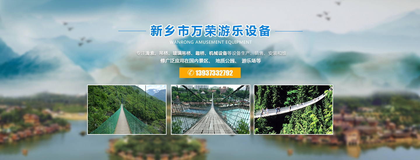 歡迎進(jìn)入新鄉(xiāng)市萬(wàn)榮機(jī)械有限公司官網(wǎng)!關(guān)鍵詞:玻璃水滑廠(chǎng)家,吊橋廠(chǎng)家, 景區(qū)吊橋價(jià)格, 滑索廠(chǎng)家, 游樂(lè)吊橋廠(chǎng)家, 玻璃吊橋, 防腐木吊橋廠(chǎng)商 ,景區(qū)吊橋, 滑索設(shè)備, 吊橋生產(chǎn)廠(chǎng)家, 吊橋多少錢(qián), 木板吊橋, 吊橋施工廠(chǎng)家